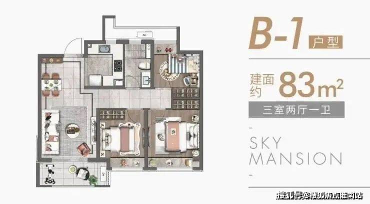 上海宝山天铂建面约83~89㎡朗阔三居全能户型,动静分离,静谧舒适,每1cm的考究,都映射着每一个人居的诉求。