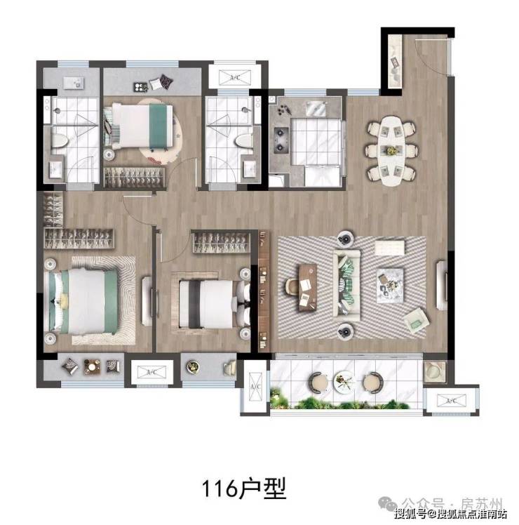 大横厅、宽景阳台、满飘窗设计,三房两卫全能空间