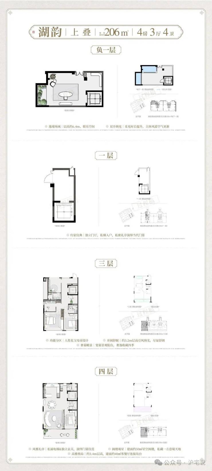 如果说联排以顶阶尺度标定圈层高度,那叠墅则是用巧思设计兑现改善理想,二者各展所长,共同勾勒出宋式低密墅境的完整轮廓!