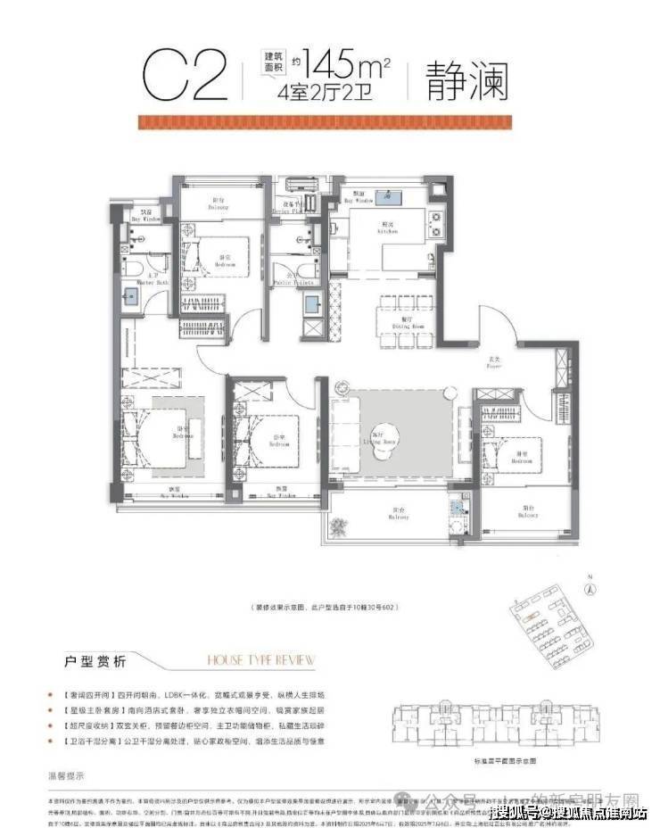 大户型面积段约为125-150㎡,全部两梯两户无连廊设计,且部分户型有朝北阳台,预计是远香湖超绝景观位。小户型约为105㎡飞机户型,一梯两户,仅少部分楼层有连廊。
