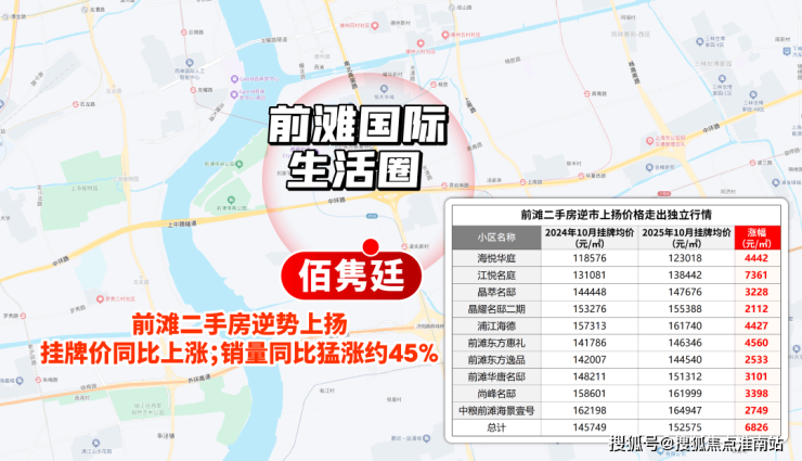 价格上,在约98%板块挂牌价同比下降的当下,前滩多数小区仍保持 价格坚挺 ;销量上,今年1-10月二手房成交约230套,同比 大涨约45.6% ,印证板块吸引力。