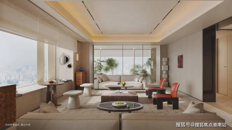 两侧采用弧形设计,让视野更大化,实现约270度观景,对望陆家嘴。
