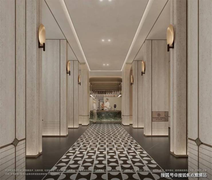 据 项目从地上到地下精心打造了 高定酒店式公区,公区实现全石材背景、全金属吊顶、全地面拼花 。