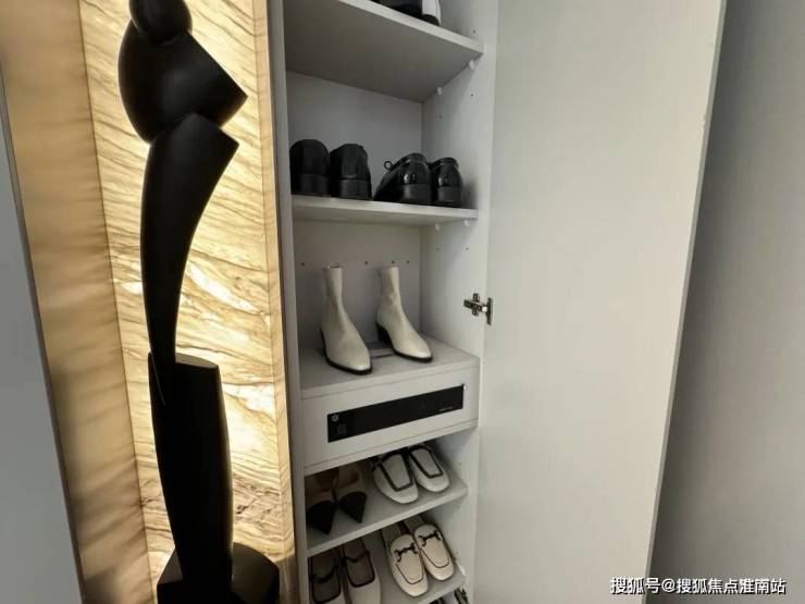 玄关柜雕塑背后也是一整块的透光奢石,划重点:交付有!