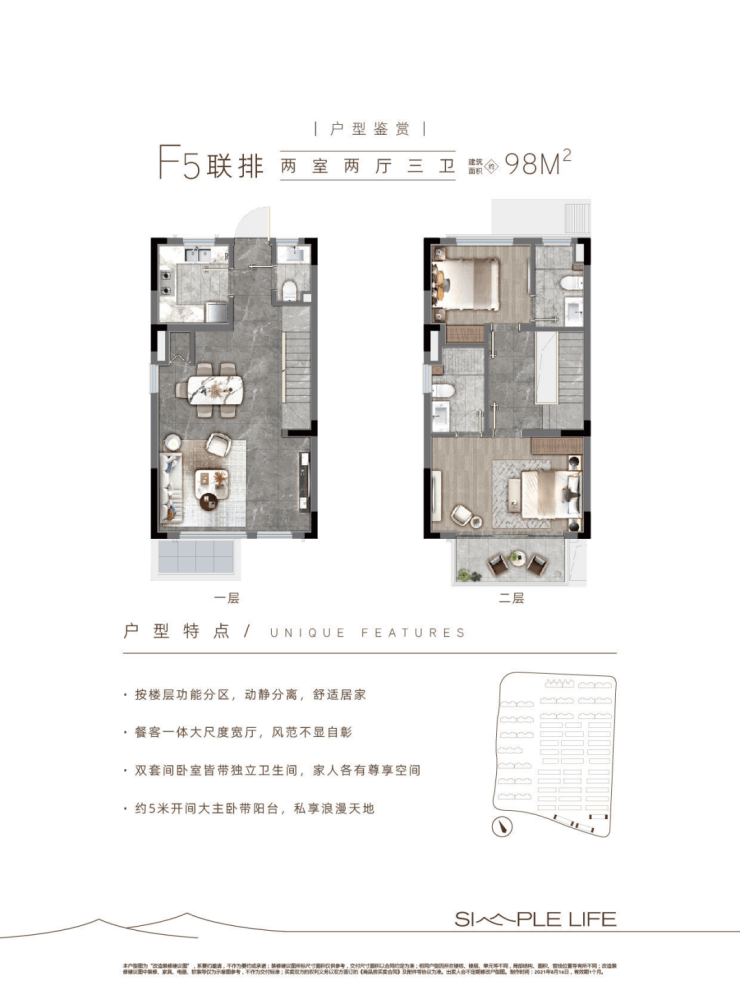 层高:洋房2.9米,联排客厅挑空约6米