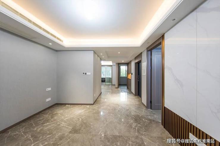 而入户玄关柜,采用了三段式玄关柜设计,上中下各设收纳分区,保持了整个空间私密性的同时,在空间使用率上又做到了合理分配。上层收纳区可用于收纳使用频率不高的家居或换季鞋服;中层物件区悬空并设置了内打灯,可摆放观赏性摆件/家庭相簿、钥匙等小物件,温馨十足;下层常用区可收纳常用鞋、拖鞋等,空间大,可满足全家鞋子收纳需求。