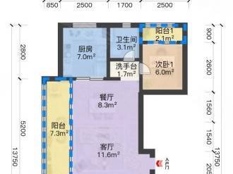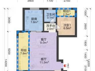 LDK客餐厨一体、在百平户型段引入南向双联阳台与独立功能阳台,主卧配置270°的L型环景飘窗,年轻小夫妻居住首选!