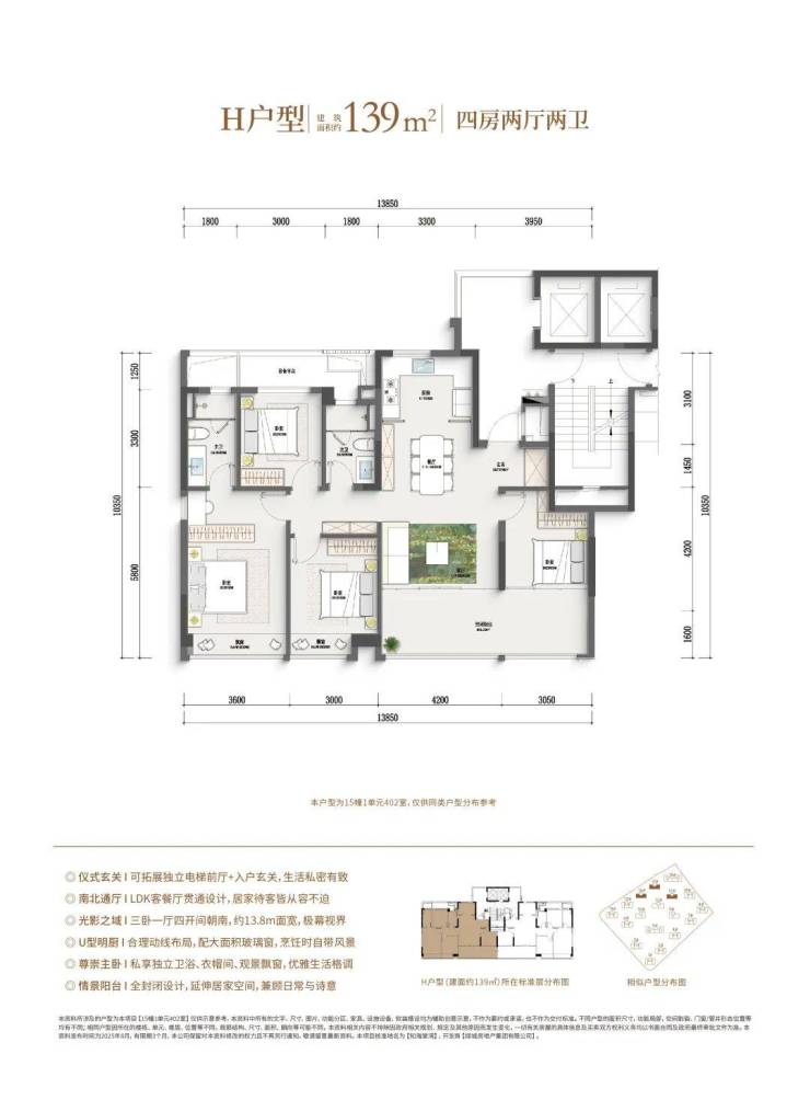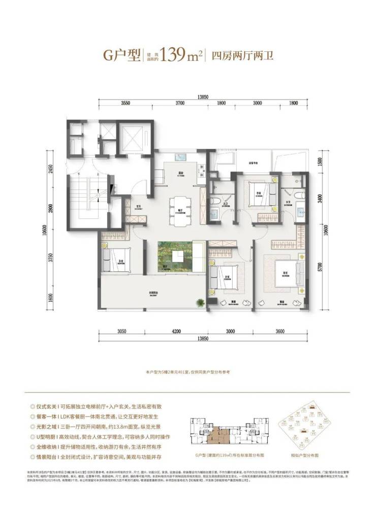 本次主推主力户型,涵盖三房 / 四房改善产品,亮点突出:高得房率 + 多赠送空间,零过道浪费类一梯一户 / 独立电梯厅,私密性与尊崇感兼备LDKB 一体化横厅设计,尺度感超越同级全系品牌精装,配置高端,居住体验一步到位