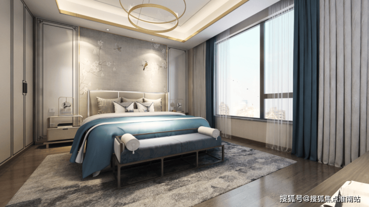 该户型二楼南向卧室有多面采光,这在上海极为少见。超长露台连接起两个卧室,如果家里有两个孩子,各自一个卧室,共通露台供其玩耍,别提有多开心。