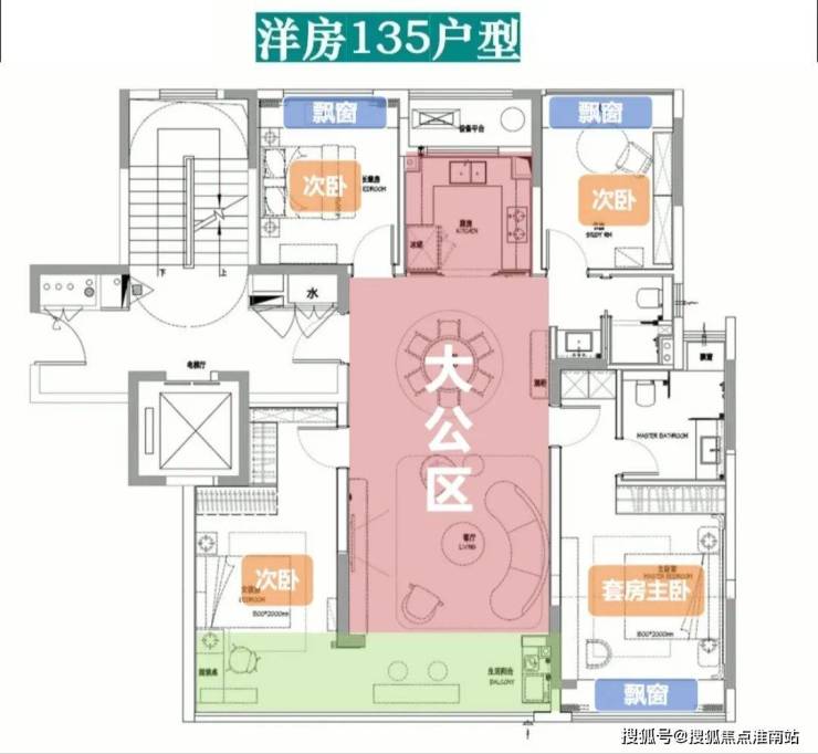 洋房主力约135㎡4房户型,一梯两户,南向开间约11.45米,主卧套房开间约3.7米,这户型一看得房率就很高。