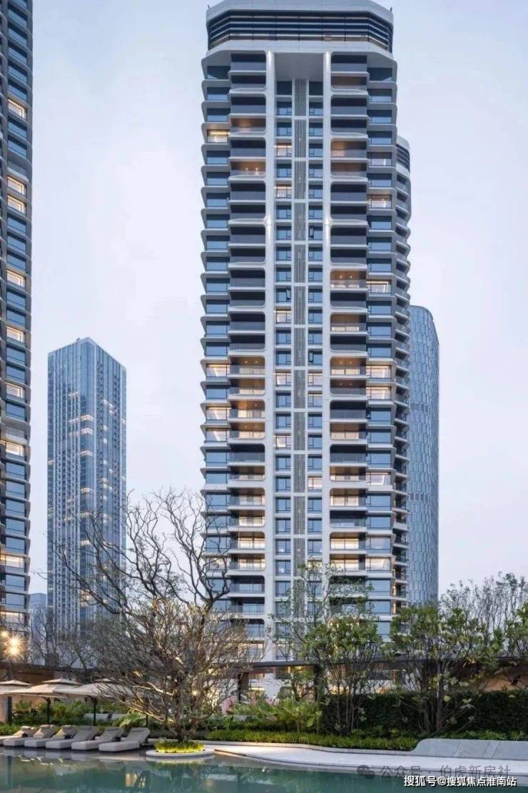 立面从湾区塔尖生活范本深圳【招商玺】汲取灵感,通过游艇曲线美学、仿游艇甲板设计,一线亲水布局,创造出全景舱观湖视野,以革新性设计理念重构流体建筑美学,打破了传统住宅建筑的平铺直叙,营造出海浪般流动的质感和韵律,通过立体解构手法实现建筑形体的悬浮感与艺术张力,构建出如游艇般舒展而流动的天际线,与远香湖的水岸线形成视觉共鸣。