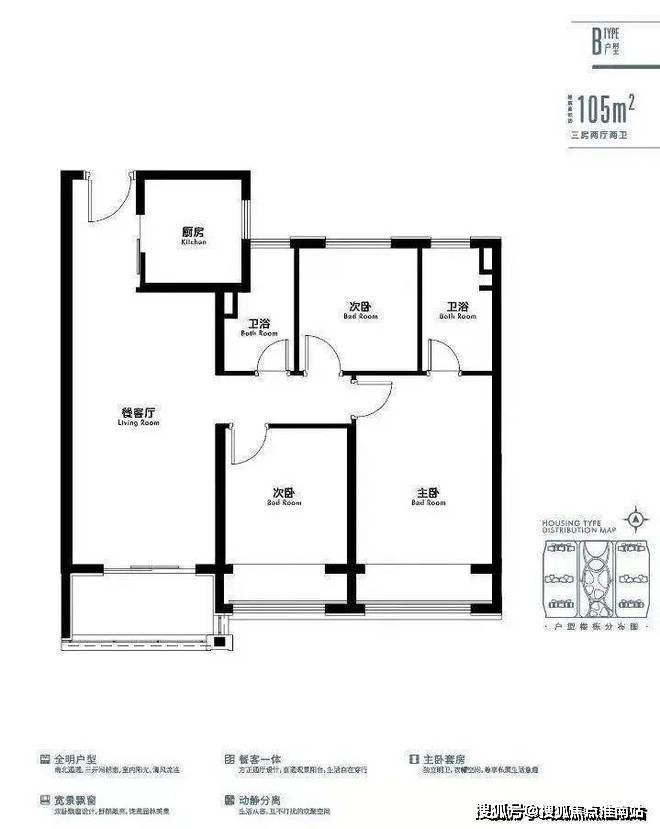 建面约105㎡3房2厅2卫