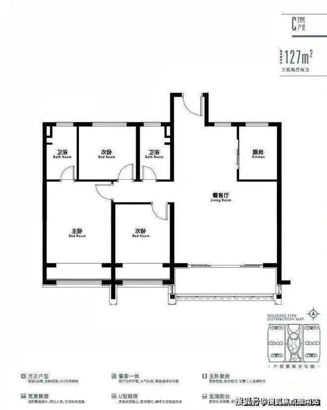 建面约127㎡3房2厅2卫
