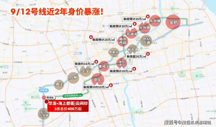 一条在建的12号线西延伸段,串联起老静安、苏河湾、北外滩多个重要商务区,拥有多达13个换乘站的“地铁换乘之王”。25年12号线沿线的房价暴涨,项目作为12号线延伸段的关键枢纽,价值也随之高涨。
