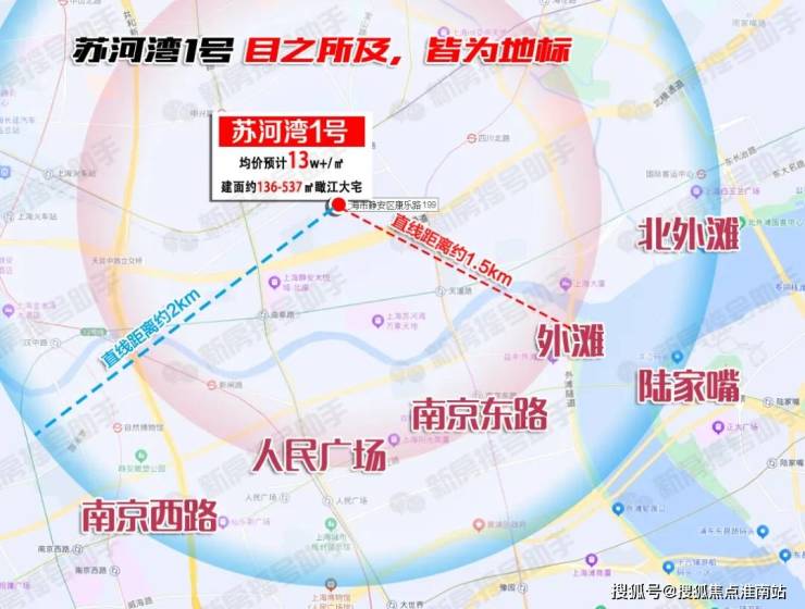 「苏河湾1号」占位城市核心,顶级资源配套密布:直线距离约700米内涵盖5条城市轨交线路和多维城市主干道、商圈密布、城市顶层医疗资源环伺!