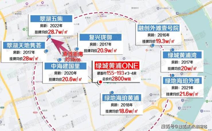「绿城·黄浦ONE」坐落于公认的豪宅板块,可谓“身处贵胄之地,尽享圈层之利”,周边直线距离约1km范围的次新豪宅挂牌价基本都在约18w-29w/㎡,堪称名副其实的房价天花板地段!