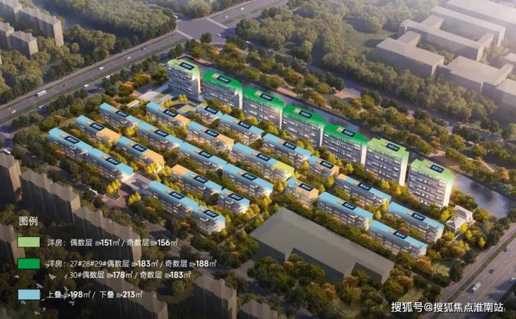 奇数层建面约156㎡;B户型偶数层建面约178㎡、奇数层建面约183㎡;叠加上叠建面约198㎡、下叠建面约213㎡。