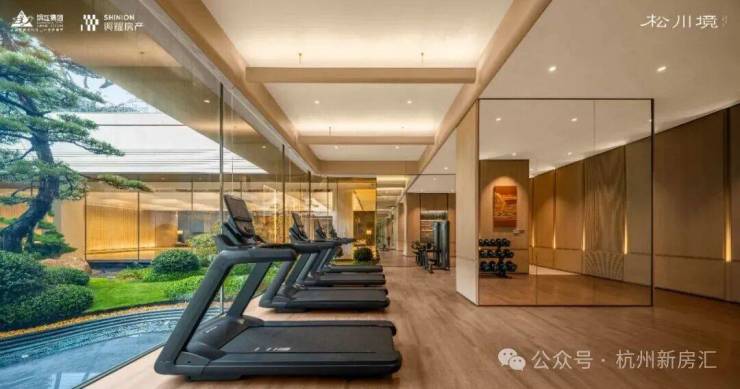 下楼到 「松氧馆」 健身房慢跑,透过270°全景玻璃幕,心赏 「澜庭」 下沉式庭院,约7米高溪山流瀑,5棵黑松高低错落,勾画出艺术馆般的静逸场域。松风水雾间,运动不再是「面壁思过」,在沉寂中厘清思绪,迸发万千灵感火花,每一次吐纳都是无尽疗愈。