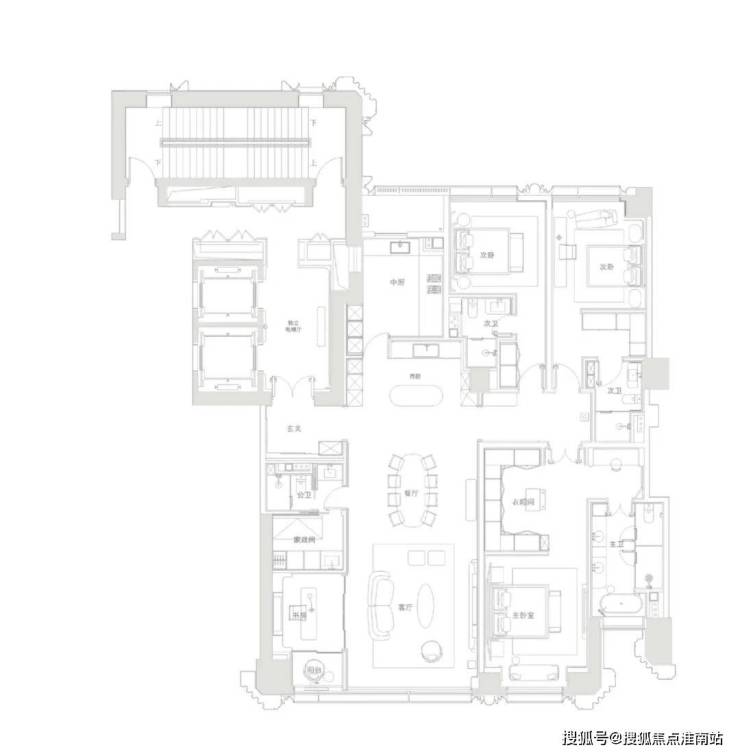 约600㎡户型是6房带4套房,完整满足了居住在平层的所有功能空间需求。