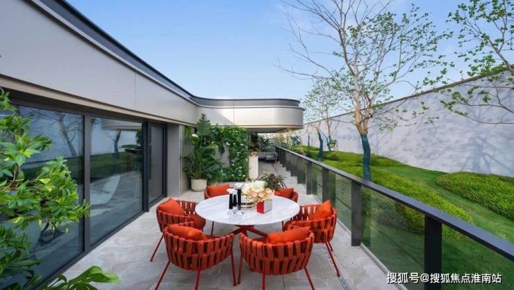 中建·太泽之星| 藏湖空中庭院约3.3米超大进深(建面约240㎡户型),相较于传统阳台的短进深,可同时容纳休闲区、绿化区、功能区的复合布局。