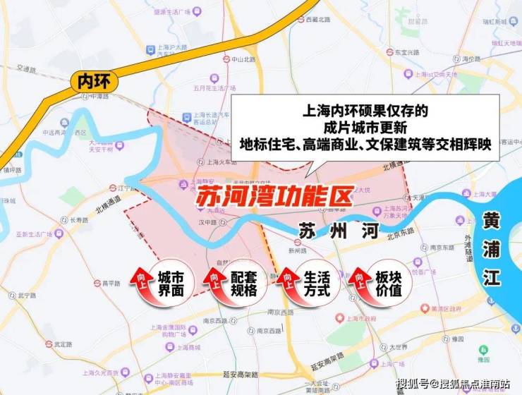 我们把苏河湾放进上海的地图内,能看到这样的一个格局: