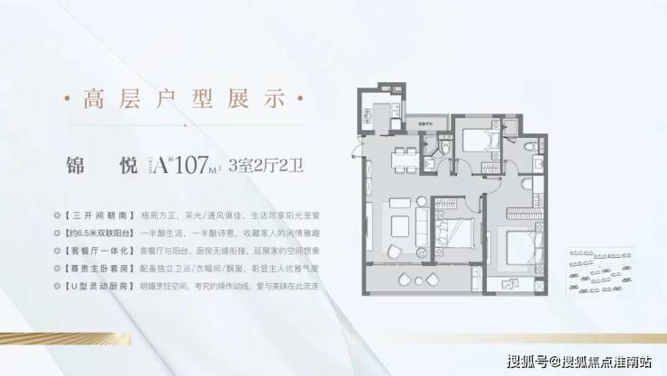 锦悦 高层 107㎡ 户型:三室两厅两卫