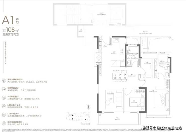 108㎡的入门级三房,起步门槛相比润府提高不少。