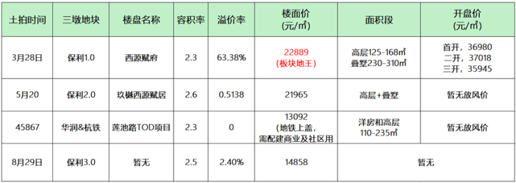 保利这三块地,楼面价一块比一块低(楼面价从22889元到14858元)。只想在周边置业的,还可再等等保利接下来二个楼盘。