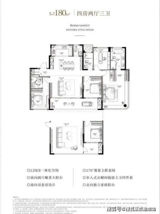 首先来看关注度很高的建面约180㎡户型——