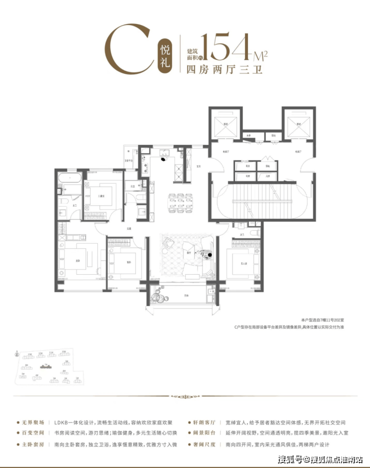 全景面宽+无界通厅+高附加值+收纳天花板,130㎡的面积直逼140㎡的尺度感!