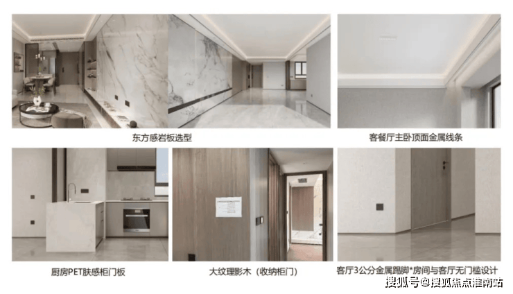 而在硬性标准之上,保利·海上瑧悦还充分融合了东方文化高定细节!比如说,客厅整面交付的大面积岩板背景墙均为东方定制款式,采用的是水墨丹青和徽州印象样式,配色风格凸显东方风雅;