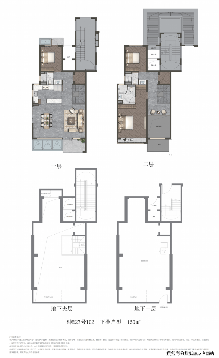 项目叠墅包含建面约141㎡上叠和建面约150㎡下叠