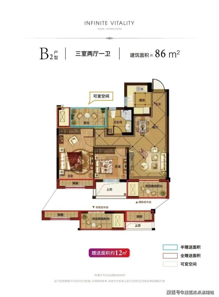 【119㎡户型】当然,也有供刚需购房者“一步到位”的三房户型——119㎡,其中可变空间也有约19㎡。