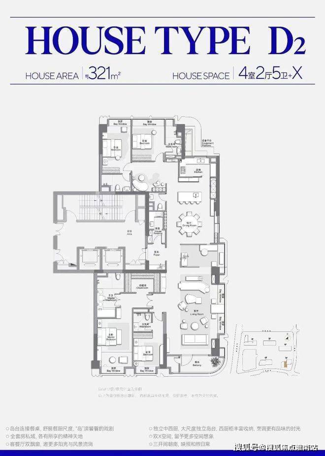 主力户型:包括建面约170-180㎡三房、276㎡四房及321㎡四房,部分户型采用“主次卧平权”设计,行政主卧套房面积达50㎡。