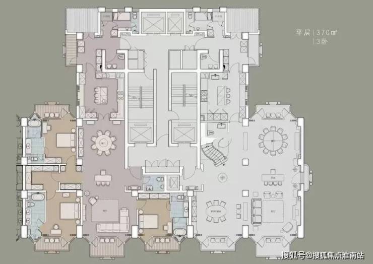 以2号楼为例 总高39层;实际住宅36层;1栋楼分2个单元 每个单元2梯2户;每两个楼层2个单元共6户大宅,370㎡平层(两个楼层2个单元共4套),680㎡复式(两个楼层2个单元共2套)另传最终交付时候可能会有户型定制