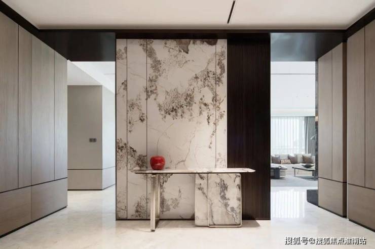 大面积幕墙、铝板、石材经“HARRY WINSTON”钻石打磨般切割工艺,营建如水奔涌的轻盈线条、大小各异的丰富立面形态,立标极简内敛的当代风尚。