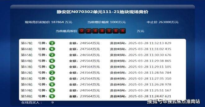 3月28日,上海2025年第三批次土拍,大华集团以总价24.85亿竞得静安大宁111-21地块,溢价率32.31%,折合楼板价92659元/㎡。装修标准不小于5000元/㎡。