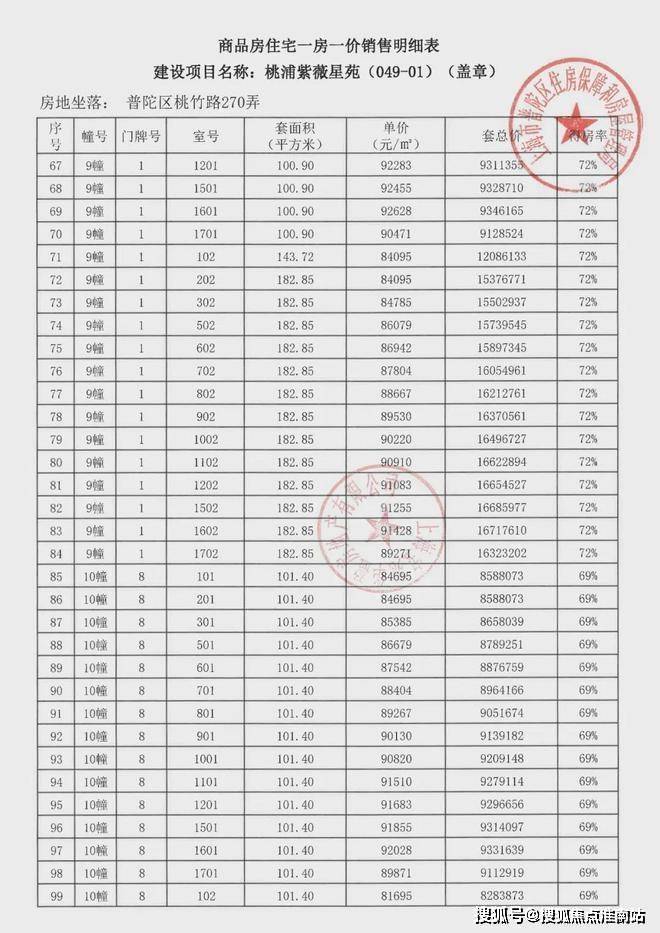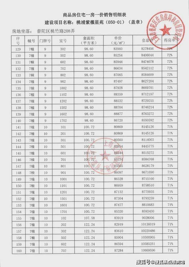 项目一房一价表▼