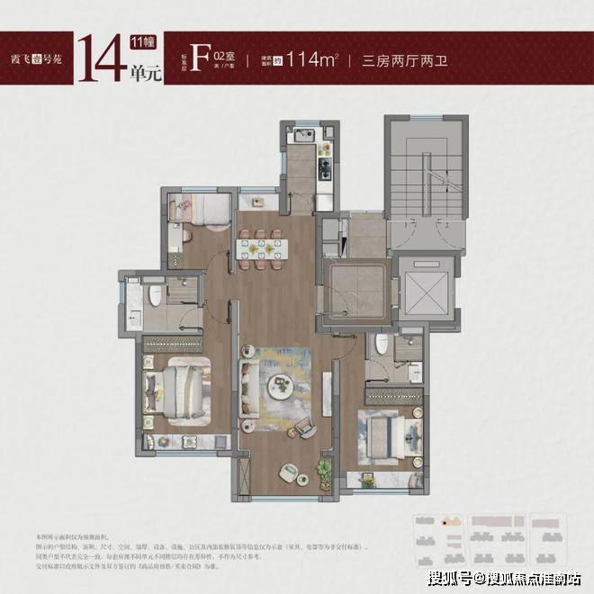 三房:建面约98-122㎡(如101㎡三房两厅两卫)