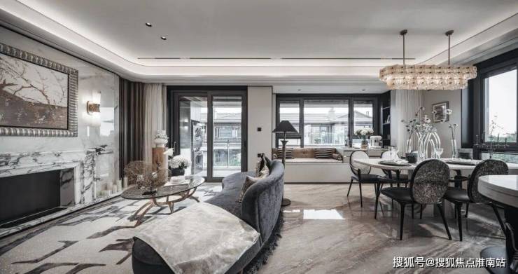 首先是奢石含量极高,从入户处的玲珑玉拼花与透光云石辉映,到翡翠绿奢石墙景、再到 发光云石装饰点亮归家路,石材的典雅贯穿始终。
