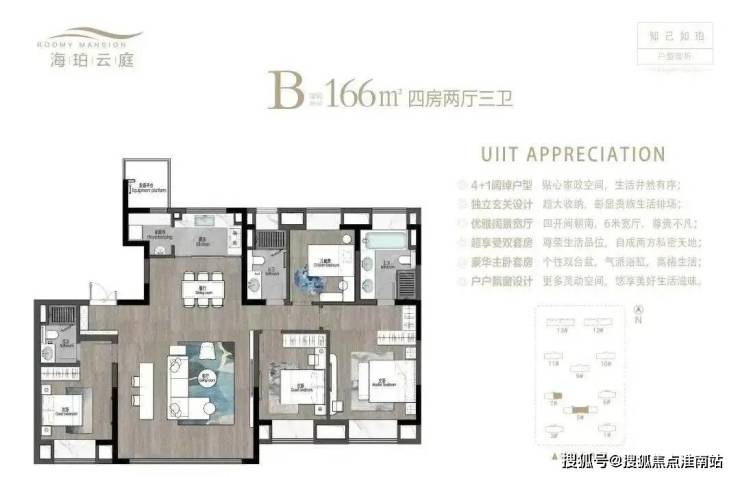酒店行政级主卧套房,约6. 2米的奢适面宽,主卧空间堪比客厅!这样的尺度足以媲美度假酒 店的行政级套房,在昆山同面积段的产品中,很难找到第二个!