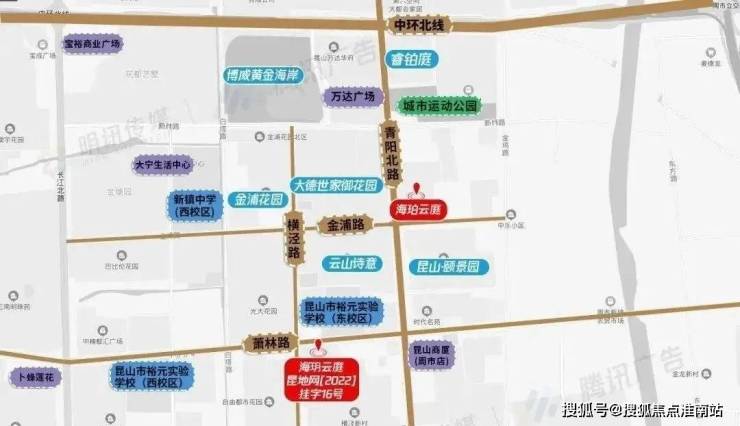 海珀云庭位于昆山青阳北路东侧、金浦路北侧,占地面积38378.2㎡,容积率1.8,规划10幢15-17F住宅楼,仅418户。