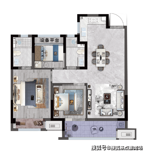 建面约89㎡三房两厅两卫户型: