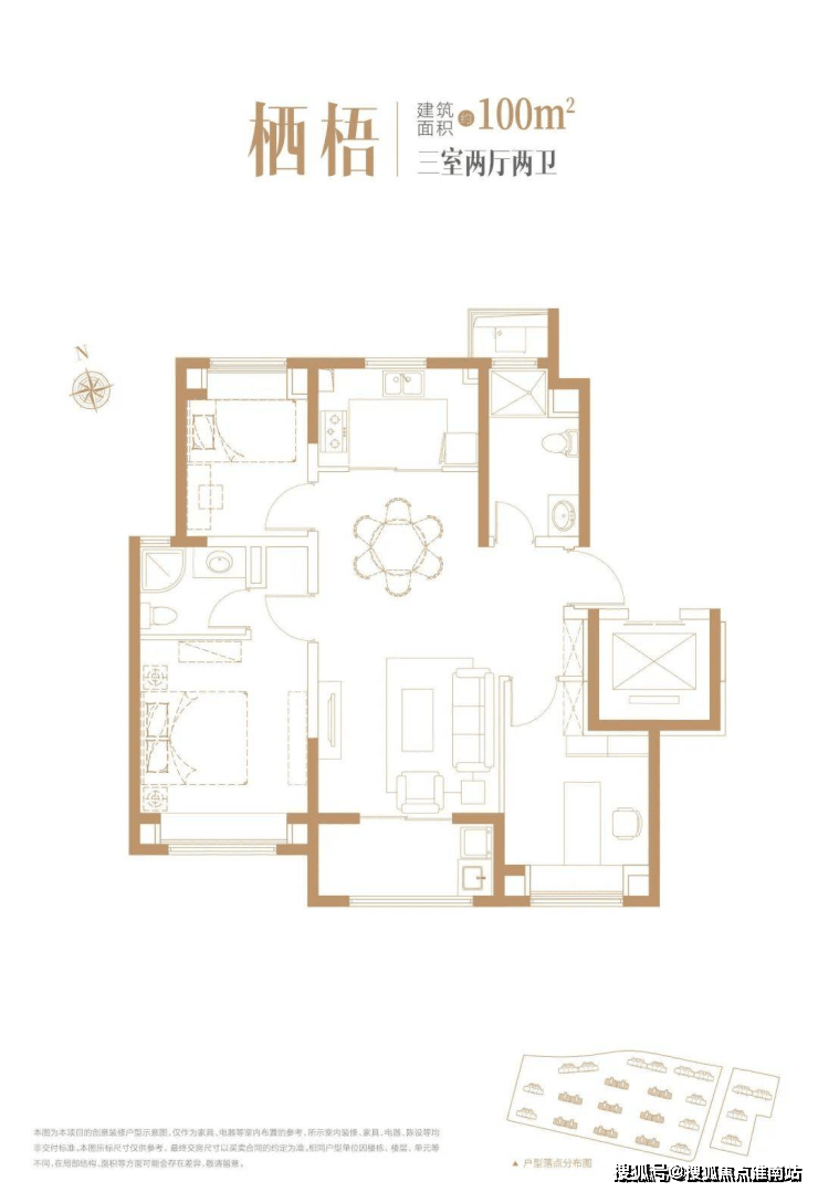11层1T2户 户型建面:100㎡