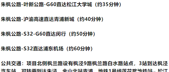 朱枫公路-叶新公路-G60直达虹桥(约45分钟)