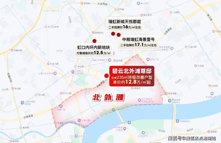 今年1批次土拍,虹口内环内靠近北外滩的新地块经过5家房企,184轮举牌,最终以 溢价率38.2%,总价 89.6亿的超高总价成交,成交楼板价约11.7万/㎡,实际可售楼板价约12.5万/㎡,未来售价或超过17万/㎡ (预计价格仅供参考,以项目官宣为准)。