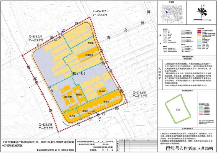 项目由南北两幅地块组成:就是上述的001、007街坊,即称1#地块和7#地块,其中,1#地块四至范围:东至新桥路,南至新闸路,西至成都北路,北至成都北路1012弄。