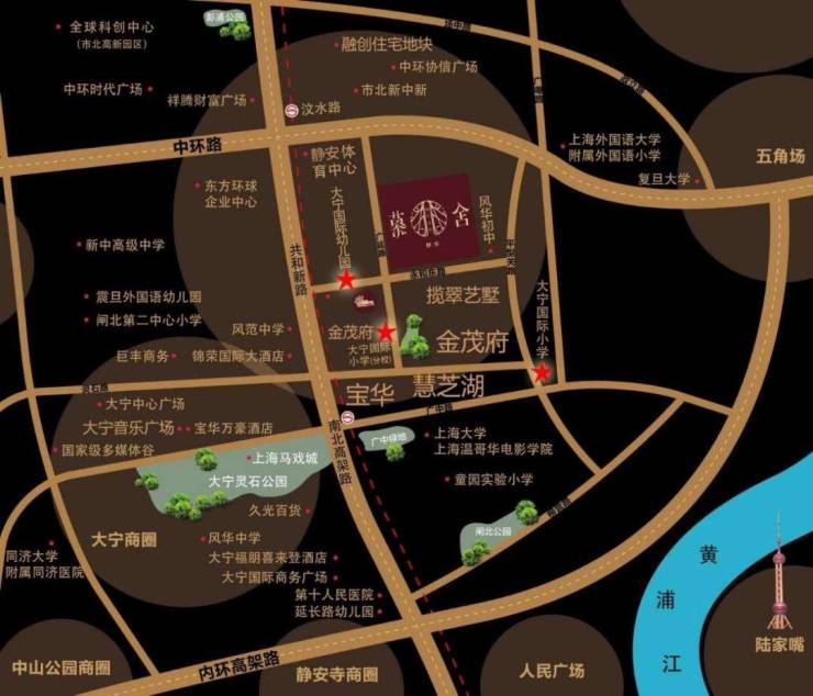 「大宁揽翠艺墅」位于新静安大宁板块最核心位置,坐拥南北高架,内环高架,北中环、延安高架的立体交通网络,黄金动脉贯穿核心,便捷可达人民广场、南京西路、静安寺、新天地、北外滩、瑞虹天地......