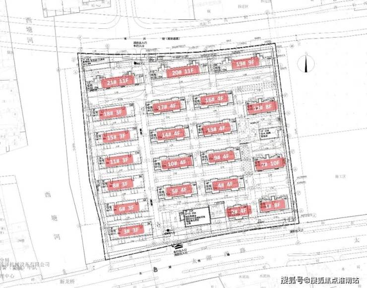 拟建21栋3-11F住宅,其中6栋3F联排,9栋4F叠加,及6栋8-11F洋房(3栋四代宅洋房),小区在长兴街和太湖西路设有车型出入口。