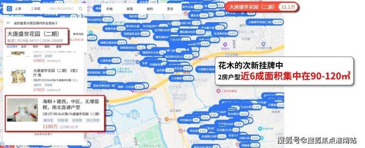 且不论浦东星河湾这样的标杆,挂牌价达约13万/㎡。如今房龄近15年+的大唐盛世花园挂牌价也要11万+/㎡。